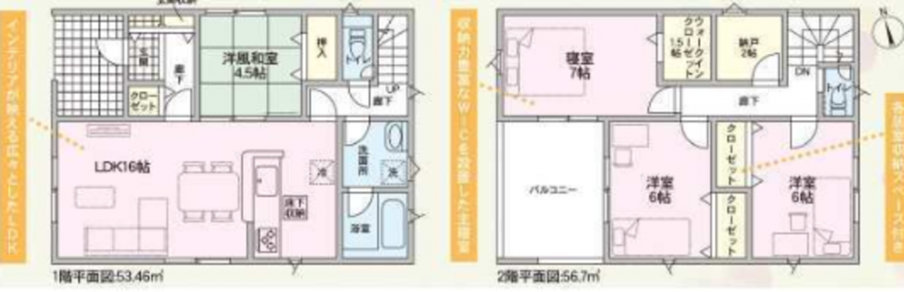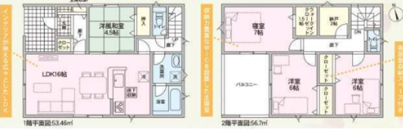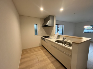 - システムキッチン、浴室乾燥機、複層ガラス、ルーフバルコニー、ウォークインクローゼット、モニタ付インターホン、駐車場2台分、床下収納、トイレ2箇所