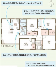 - システムキッチン、シャンプードレッサー、浴室乾燥機、追い焚き、モニタ付インターホン、床下収納