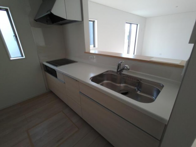 - システムキッチン、カウンターキッチン、IHクッキングヒーター、オール電化、シャンプードレッサー、洗浄便座、浴室乾燥機、複層ガラス、ルーフバルコニー、モニタ付インターホン、駐車場2台分、床下収納、トイレ2箇所