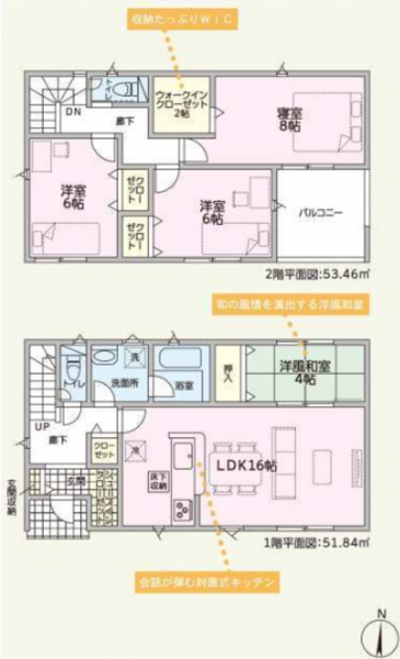 - オール電化、ルーフバルコニー、システムキッチン、カウンターキッチン、IHクッキングヒーター、シャンプードレッサー、浴室乾燥機、モニタ付インターホン、洗浄便座、ウォークインクローゼット、複層ガラス、駐車場2台分、床下収納、トイレ2箇所