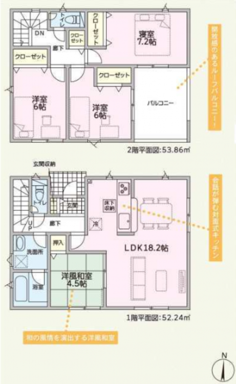 - 建物面積に別途ルーフバルコニー約9.72平米有り