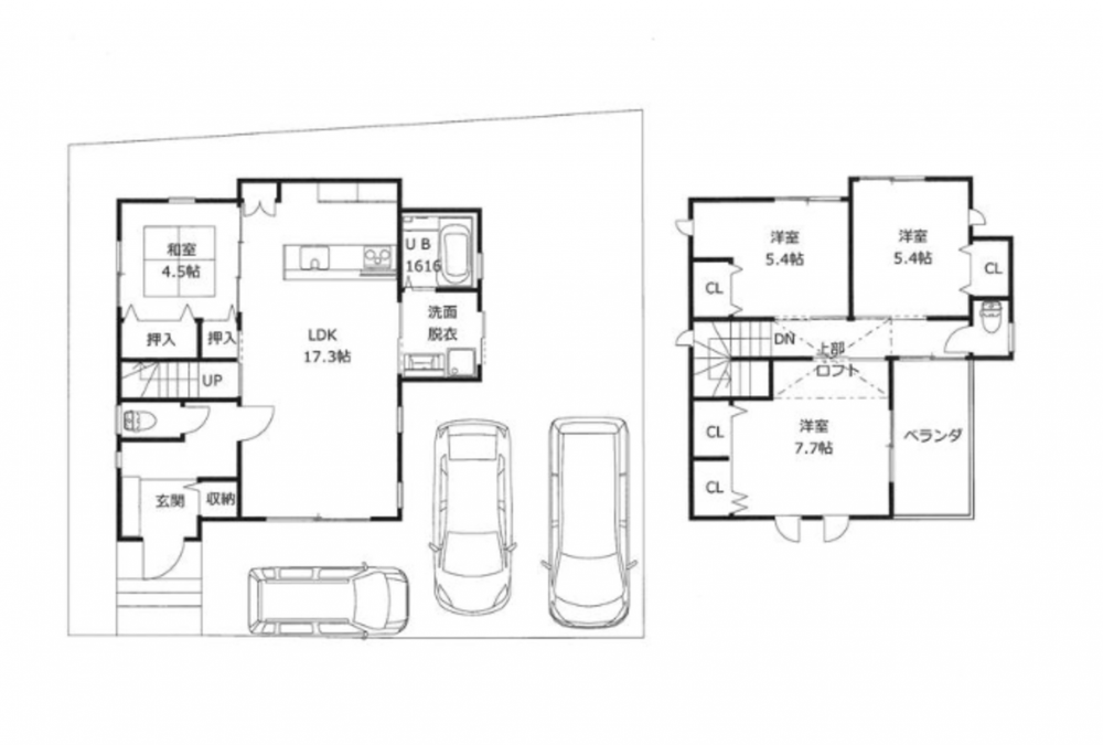 - システムキッチン、カウンターキッチン、駐車場2台分、駐車場3台分、トイレ2箇所