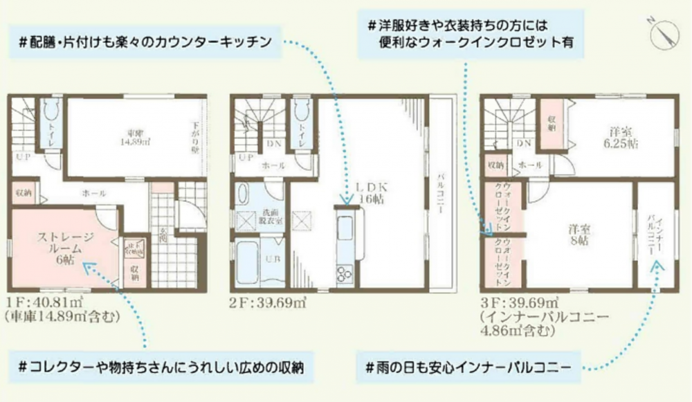 WIC,ストレージルームなど収納豊富な2SLDK!