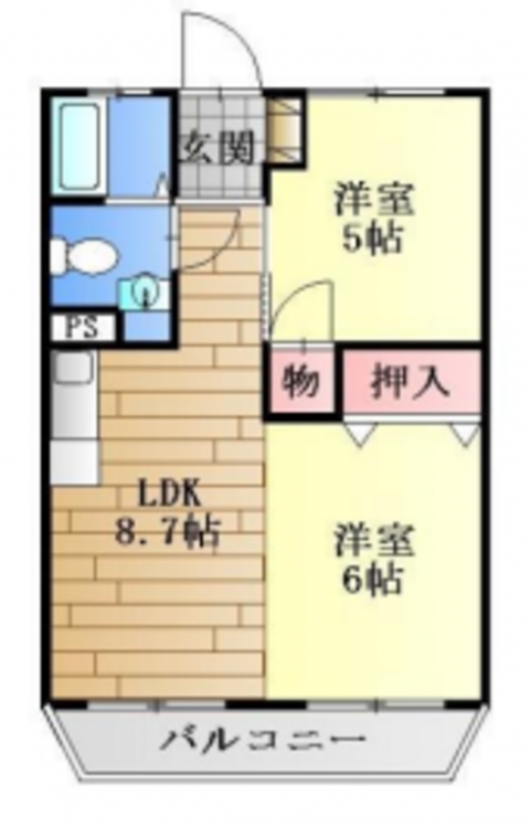 ☆2DKの間取り/最上階4階部分