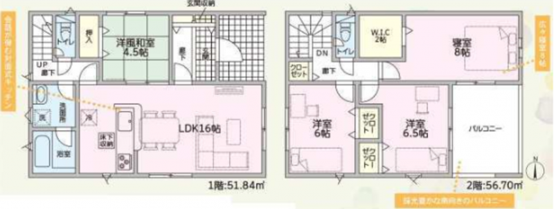 - オール電化、ルーフバルコニー、システムキッチン、カウンターキッチン、IHクッキングヒーター、シャンプードレッサー、浴室乾燥機、モニタ付インターホン、洗浄便座、ウォークインクローゼット、複層ガラス、駐車場2台分、床下収納、トイレ2箇所、ディンプルキー