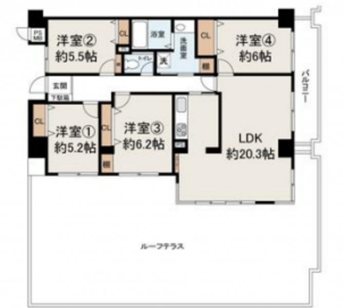 - ルーフバルコニー、オートロック、角部屋