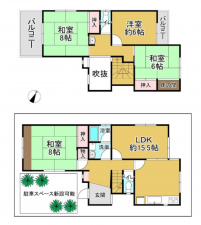- システムキッチン、洗浄便座、追い焚き、モニタ付インターホン、床下収納、トイレ2箇所